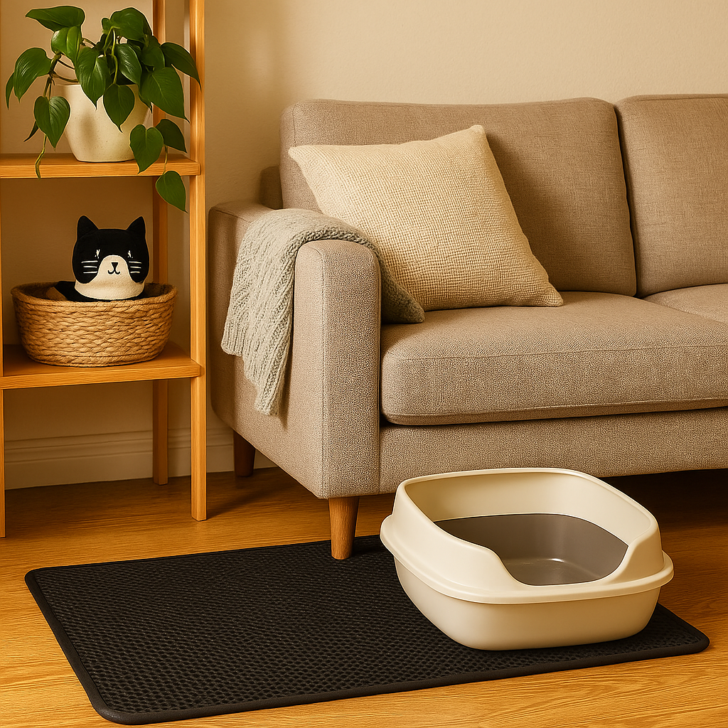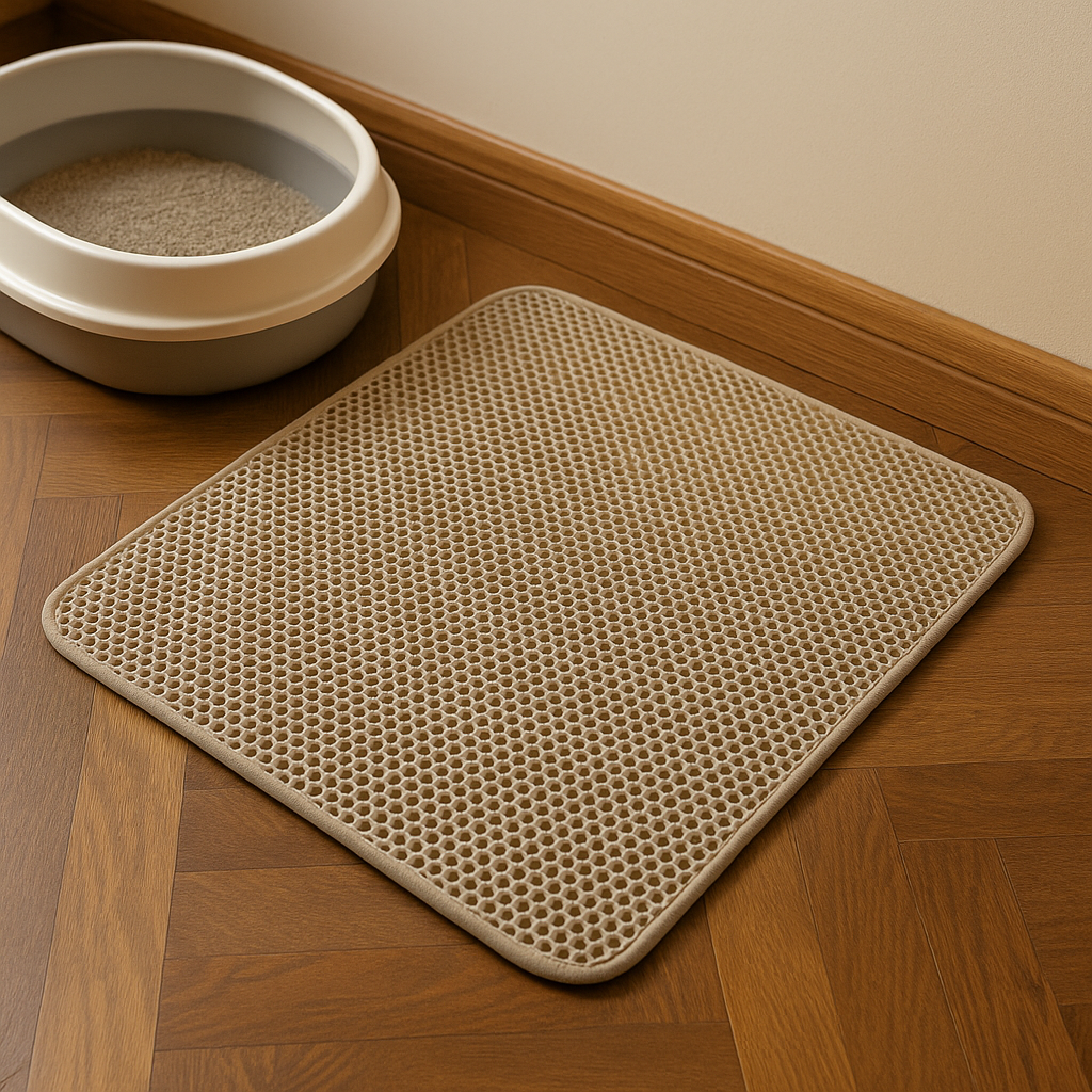 To proste – połóż matę przy kuwecie w miejscu, gdzie kot zwykle wychodzi, najlepiej na płaskiej powierzchni. Upewnij się, że mata leży stabilnie – jej antypoślizgowy spód zapobiega przesuwaniu się. Nie trzeba jej przyklejać ani zabezpieczać – koty czują się na niej naturalnie i bezpiecznie. A dla Ciebie to mniej sprzątania i więcej spokoju.